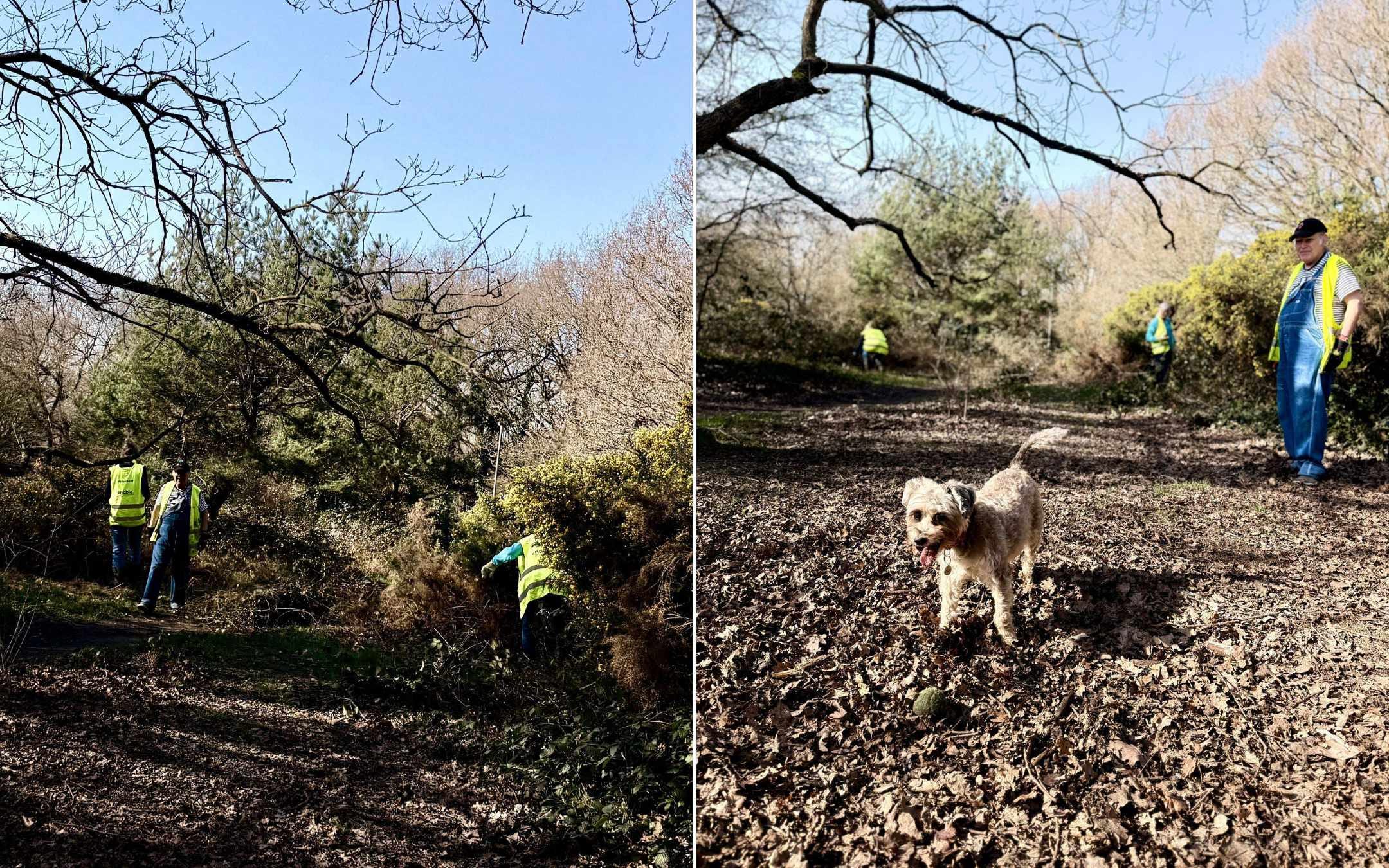 Volunteers from Friends of Tooting Common (human and canine!) and Enable Parks helped to clear the brambles smothering the gorse on the common recently.