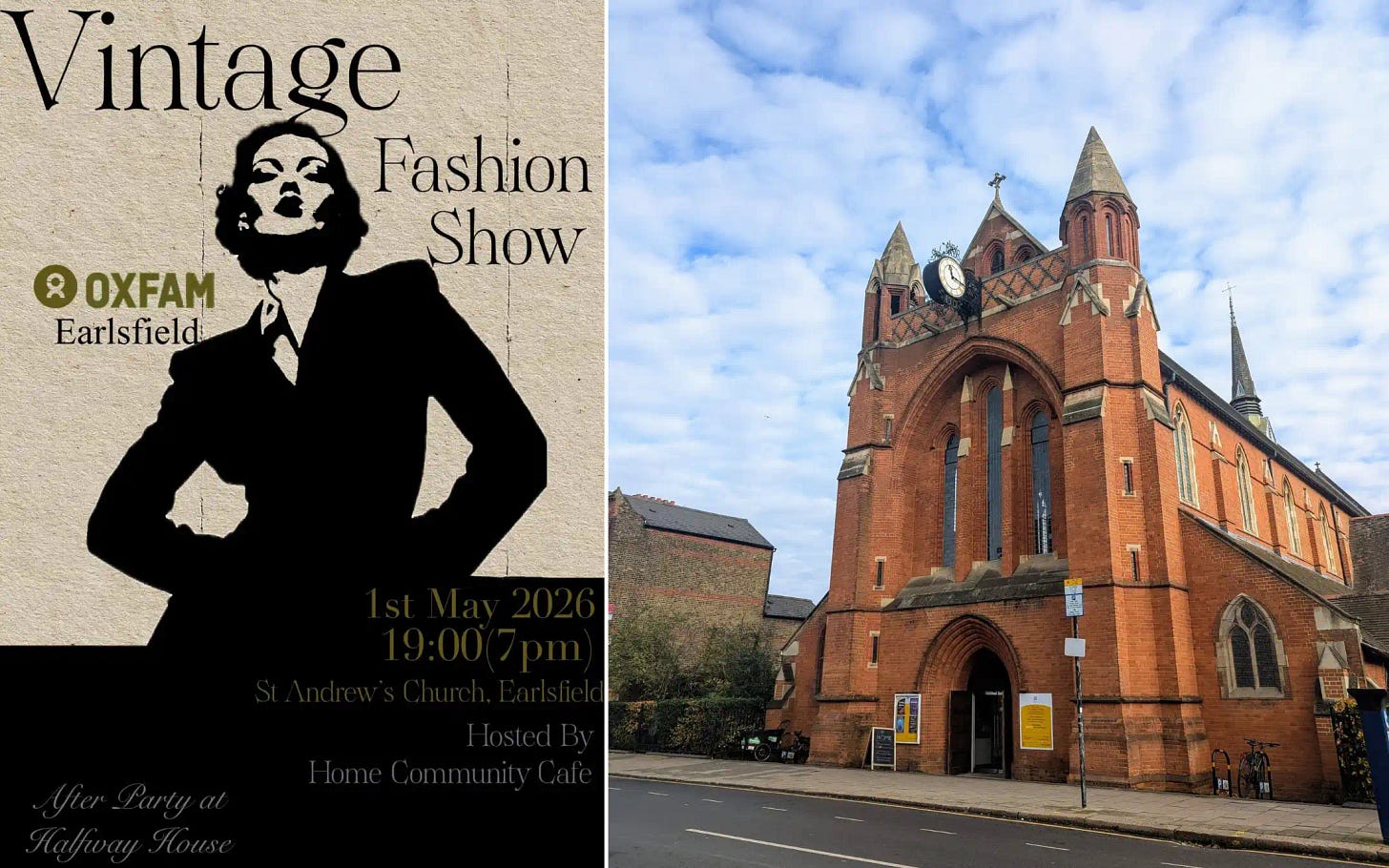 Oxfam Earlsfield holds its fourth Annual Fashion Show, hosted by the Home Community Café (in collaboration with The Horn Runway) at St Andrews Church. This year’s show will feature vintage items from the 1940’s to the early 2000’s, plus items by a new designer Andreia Marques, with all outfits showcased by professional runway models.