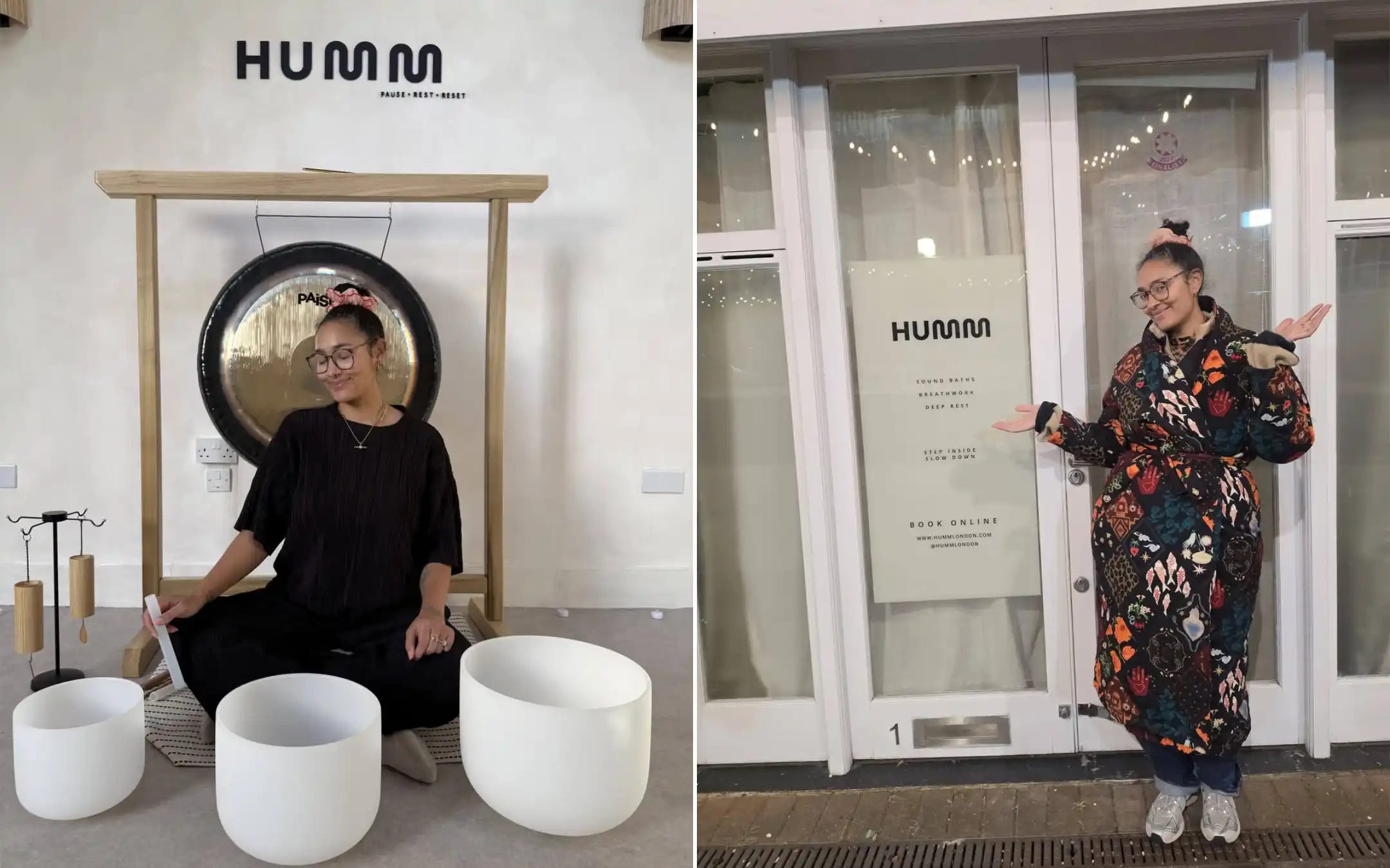 New sound bath & breathwork studio Humm London has opened just down the road from Tooting in Merton Abbey Mills, launched by local resident Jade – with free sessions available when you bring a friend (see below).
