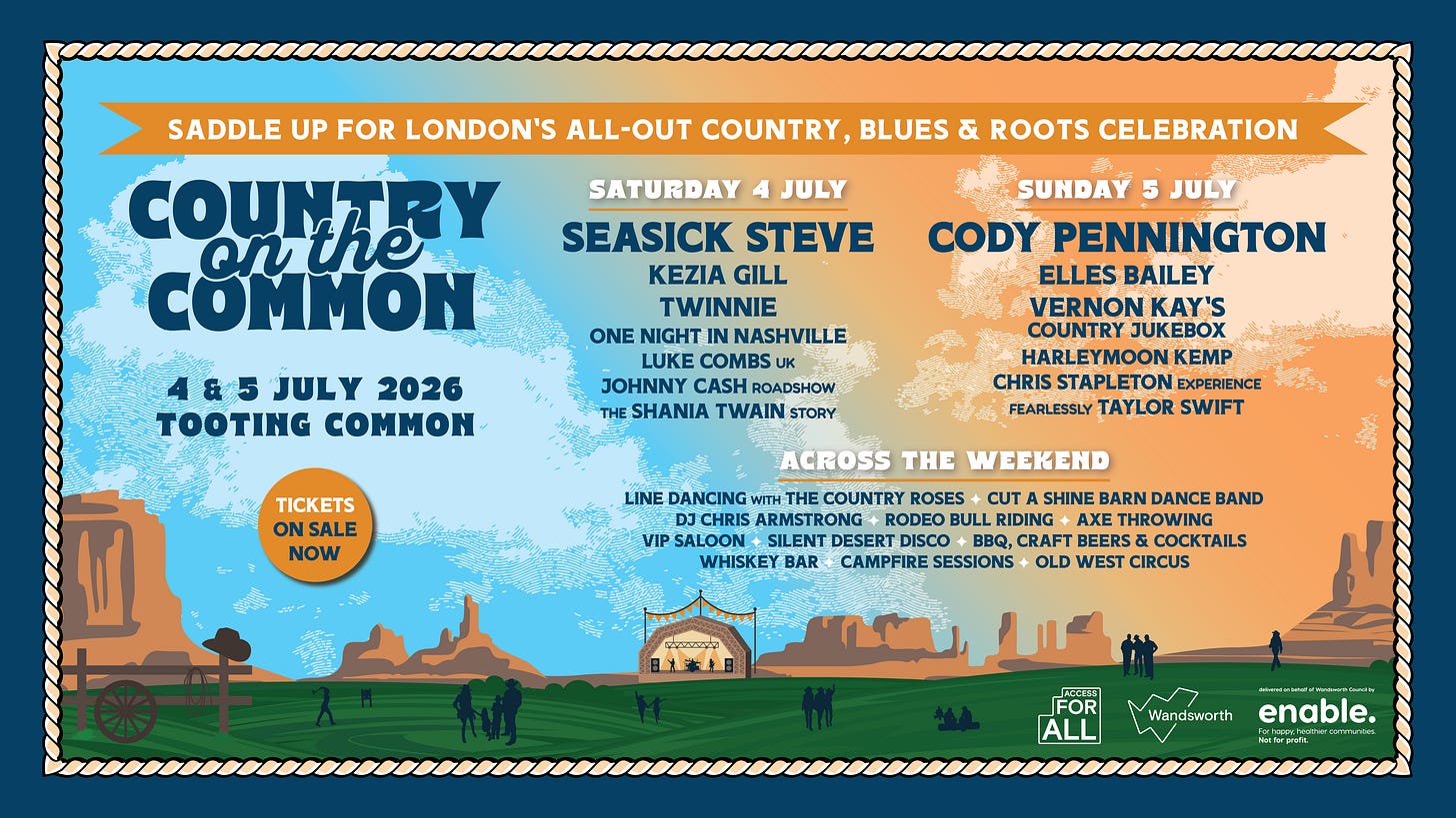 Country on the Common returns to Tooting in 2026 with the line-up now announced – and there are some big names coming to Tooting Common! 🤠🎶
