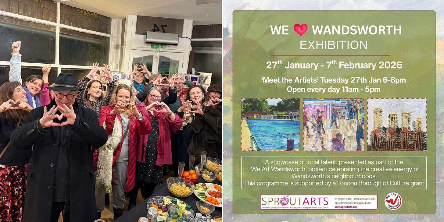 Over 50 local artists are part of Sprout Community Arts’s We ❤️ Wandsworth exhibition in Furzedown, which opened with a fantastic ‘Meet the Artist’ event on Tuesday 27th January.