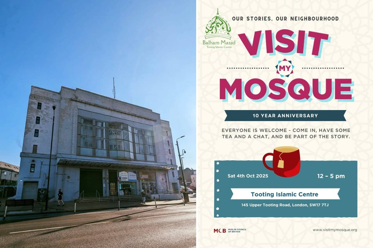 Tooting Islamic Centre hosts a community open day this Saturday, 4 October. Part of the national Visit My Mosque Day at Tooting Islamic Centre, locals of all faiths and none are invited to explore the Mosque, learn about its history and significance to Muslim and civic life, and meet those who worship there.