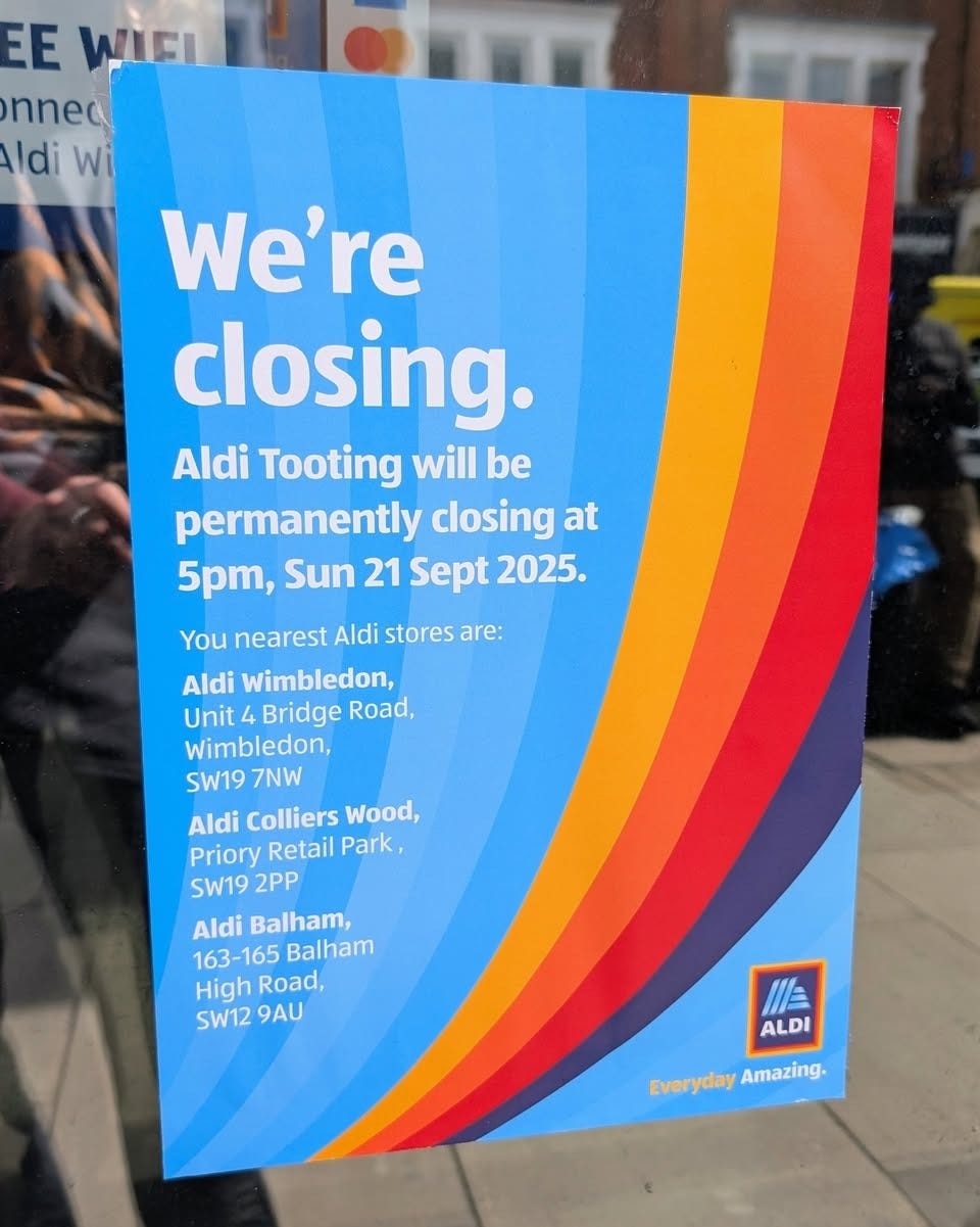An Aldi Spokesperson said, "Our Tooting Store will close in September 2025 when its current lease ends. Our valued customers will still be able to shop and save close to home at our Wimbledon, Colliers Wood and Balham sites, and our amazing colleagues will be relocated to local stores.