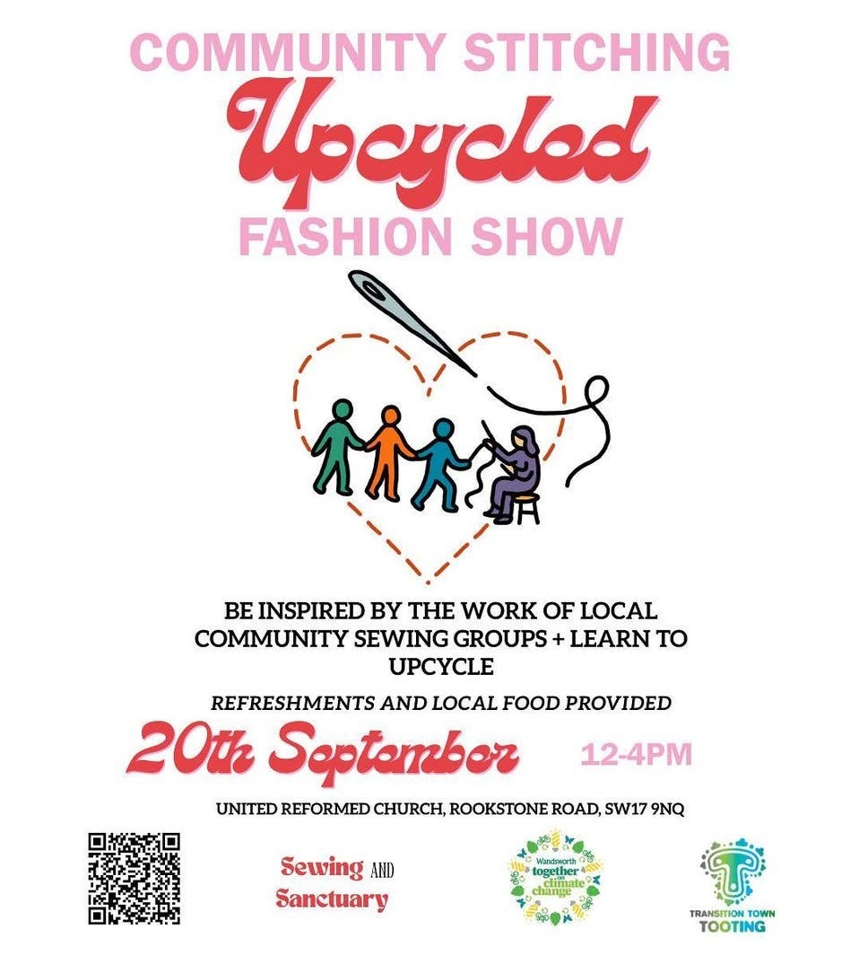 FREE Community Stitching Upcycled Fashion Show in Tooting this Saturday 20th September, 12pm-4pm, at United Reformed Church, Rookstone Road, SW17 9NQ!