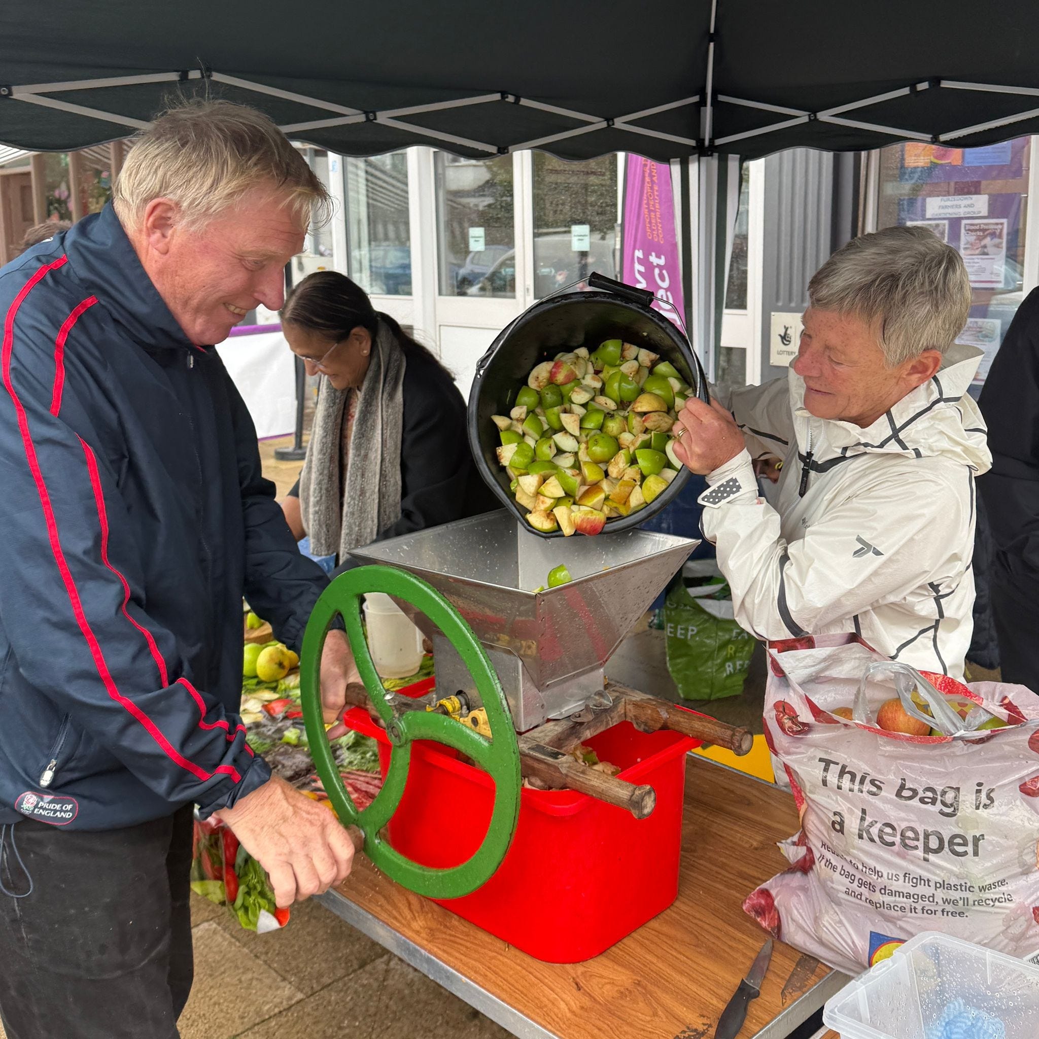 There was a fantastic fruit-pressing event outside The Furzedown Project on Thursday 11th September – volunteers had collected over 200kg of apples from local gardens and allotments!