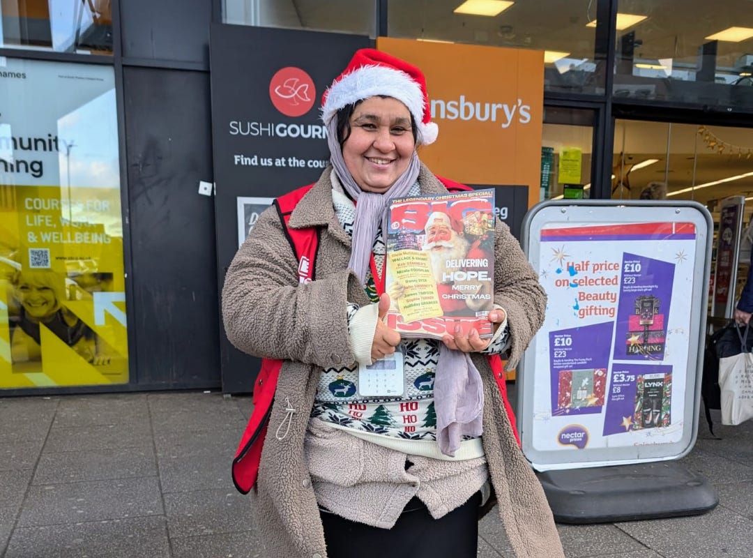 The Big Issue seller Polina is in the the Christmas spirit outside Sainsbury's at 71-77 Tooting High Street! You'll find her there every day in the run-up to Christmas (and she has a card machine to take payments if you're short on change). Pop by and see her for your Christmas copy!