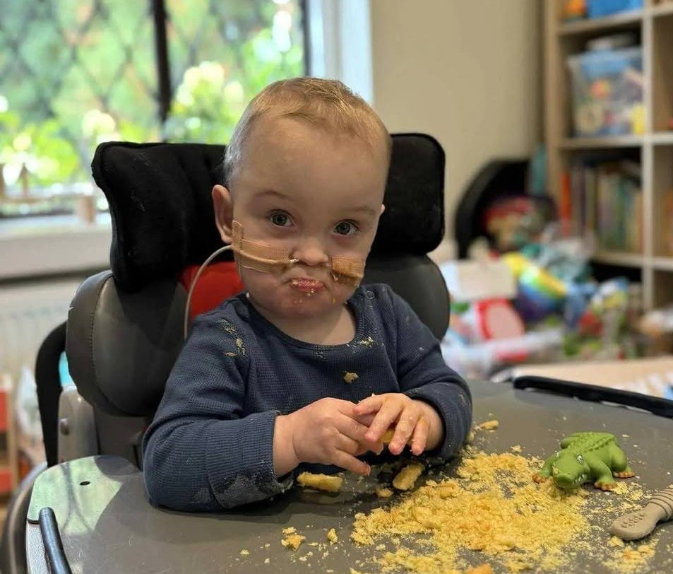 In March 2025, after 13 months in both the NICU and Paediatric Intensive Care Unit (PICU), they were discharged home. It took a couple of weeks to settle in, but they slowly got into a routine and Jacob continued to thrive. It’s now November and Jacob has come off half of the medications he returned home with. Day to day, Jacob is fully engaged in activities.