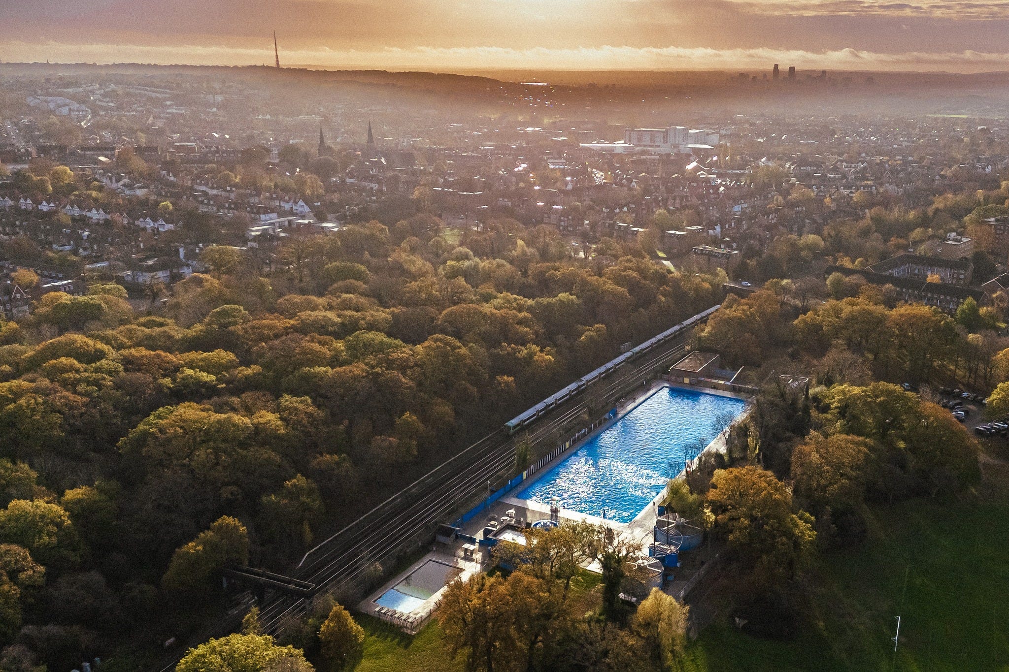 A stunning photo of daybreak over Tooting Bec Lido, captured by Simon Townsend (Instagram: @droning_on_in_london) – thanks for sharing!