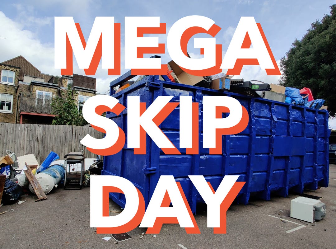 The next Mega Skip Day takes place from 9am this Saturday 14th March, in seven locations around Wandsworth, including Tooting.