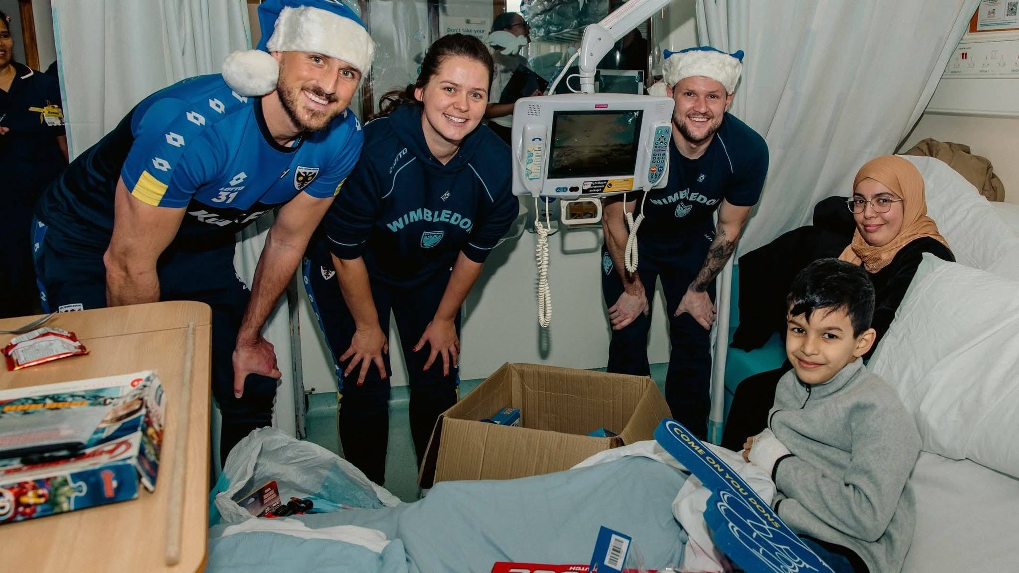 A special day at Tooting’s St George’s Hospital, with members of AFC Wimbledon Men’s and Women’s first-teams joining Haydon the Womble and AFC Wimbledon Foundation staff on a visit to the children’s wards to spread Christmas cheer and deliver gifts last week! 🎁 🎄