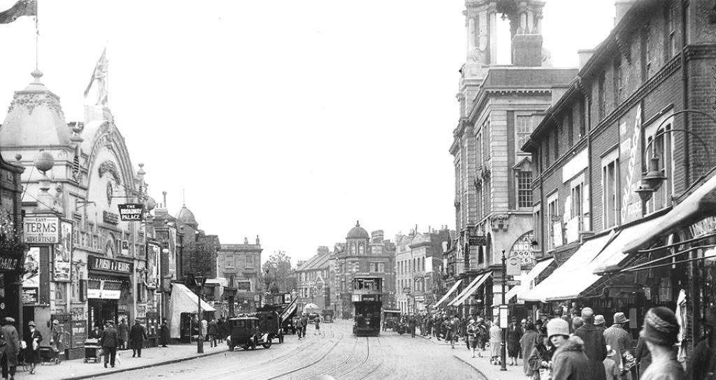 Mitcham Road in 1925! The view looks northwest to the junction with Tooting High Street and Garratt Lane. The Broadway Cinematograph Palace on the left and the Methodist Central Hall on the right are of course long gone, but the domed building on the corner (in the middle of the picture) still stands today.