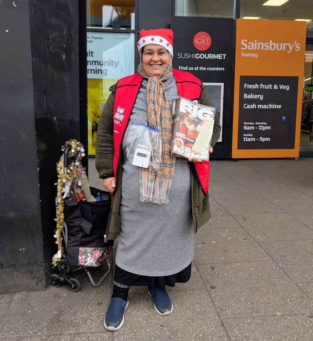 The Big Issue seller Polina is in the Christmas spirit outside Sainsbury’s at 71-77 Tooting High Street! You’ll find her there every day, 9am-4pm in the run-up to Christmas – swing by to see her for your Christmas copy (cash and card payments available)! 🎄🦌