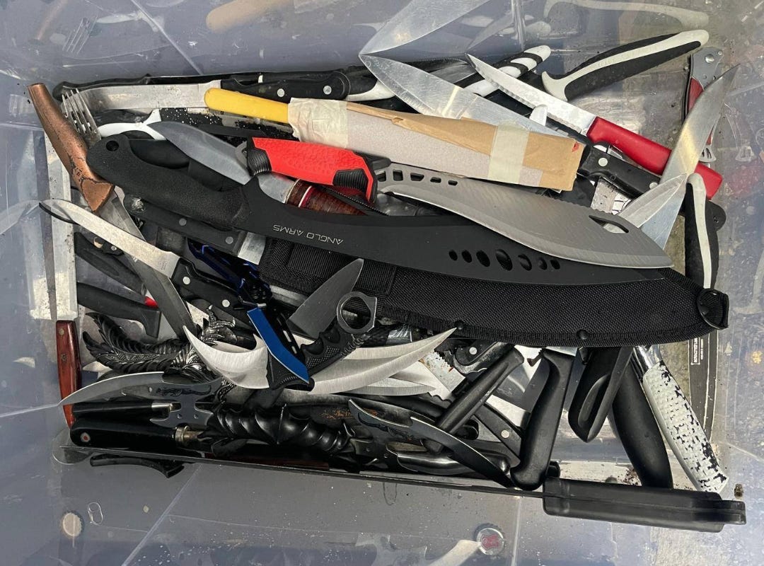 Tooting’s St George's Hospital has installed an amnesty bin for weapons, which has already led to the surrender of 87 dangerous items including machetes, zombie knives, and knuckledusters. This initiative comes as the hospital reveals knife-related admissions have almost doubled, with over 500 people treated for injuries from knives and sharp objects last year compared to 2022.