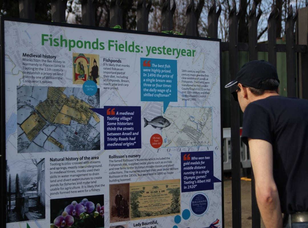 The boards, unveiled by Mayor of Wandsworth, Councillor Sana Jafri, recount the story of the fields, past, present and future. They're there for the whole community to view every day, 9am-4pm, at Fishponds Fields, located on Hebdon Road, SW17 7NW – just turn off Upper Tooting Road and walk straight down Hebdon Road for 5 minutes.