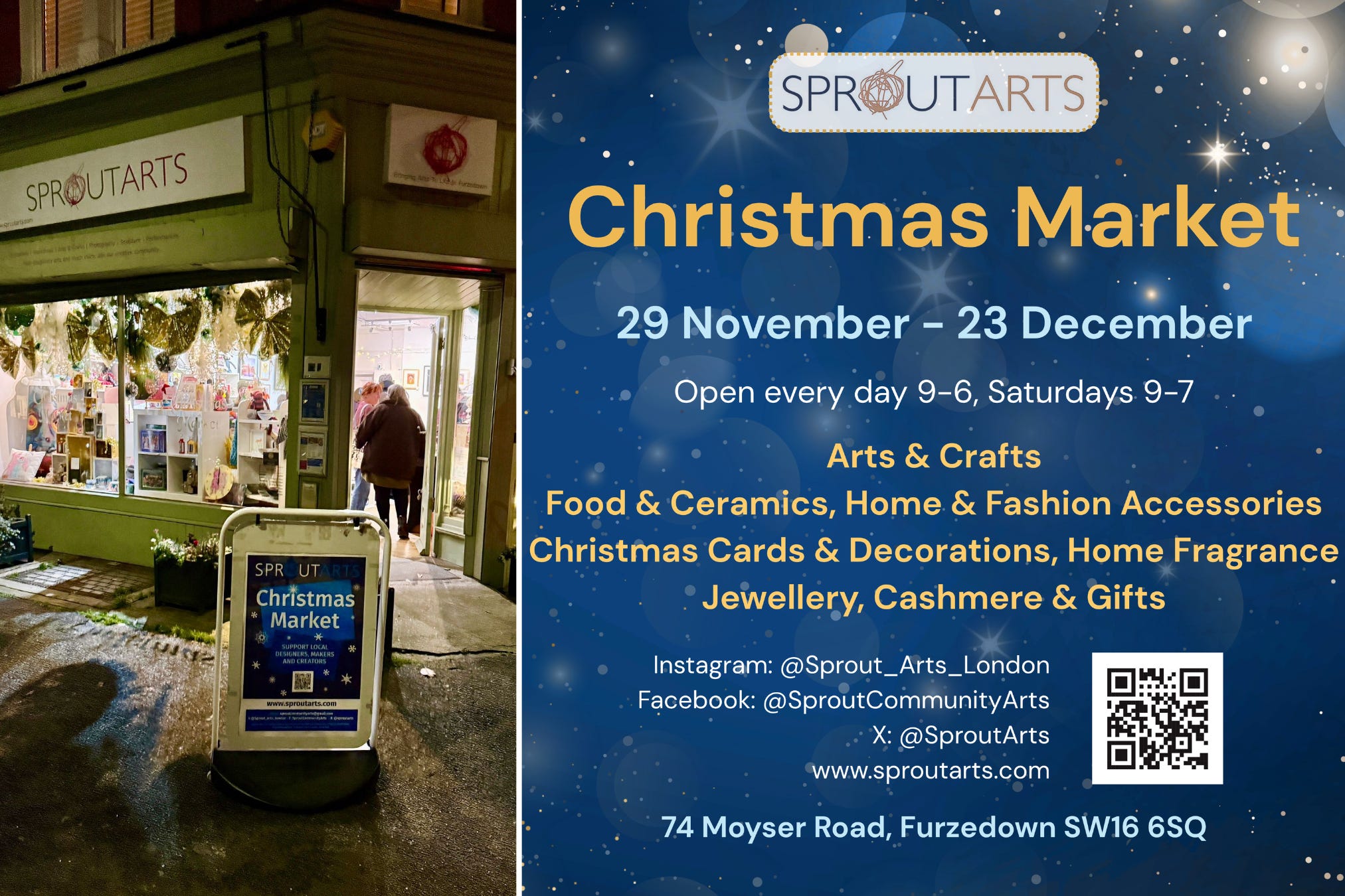 The Sprout Arts Christmas Market in Furzedown is now open, with 34 fabulous local artists, makers and businesses taking part!