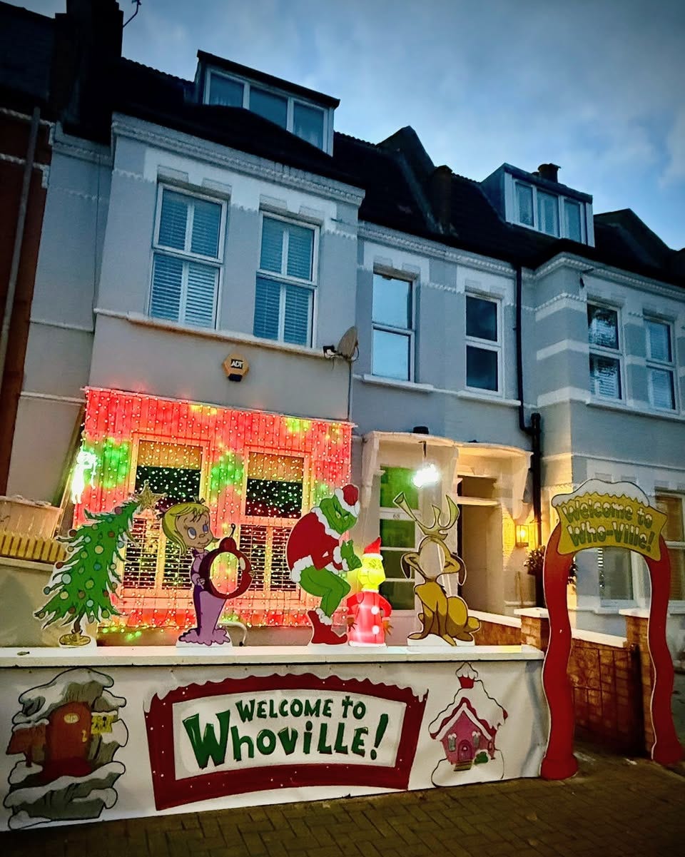 Whoville in Tooting! There’s a fantastic festive Grinch display on Moring Road in Tooting, complete with interactive cut-out characters to put heads through for selfies!