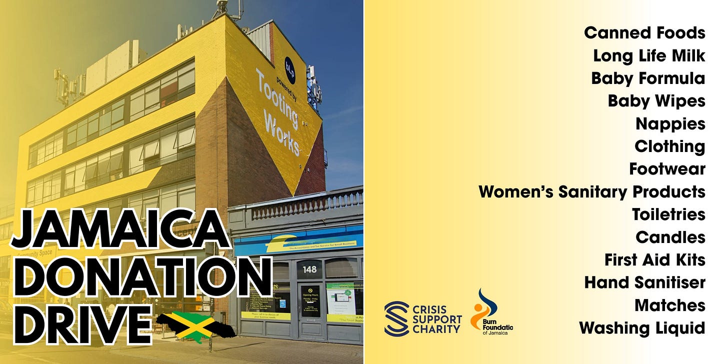 Local youth charity Business Launchpad and social enterprise Tooting Works are collecting donations to support Jamaica in the aftermath of Hurricane Melissa.