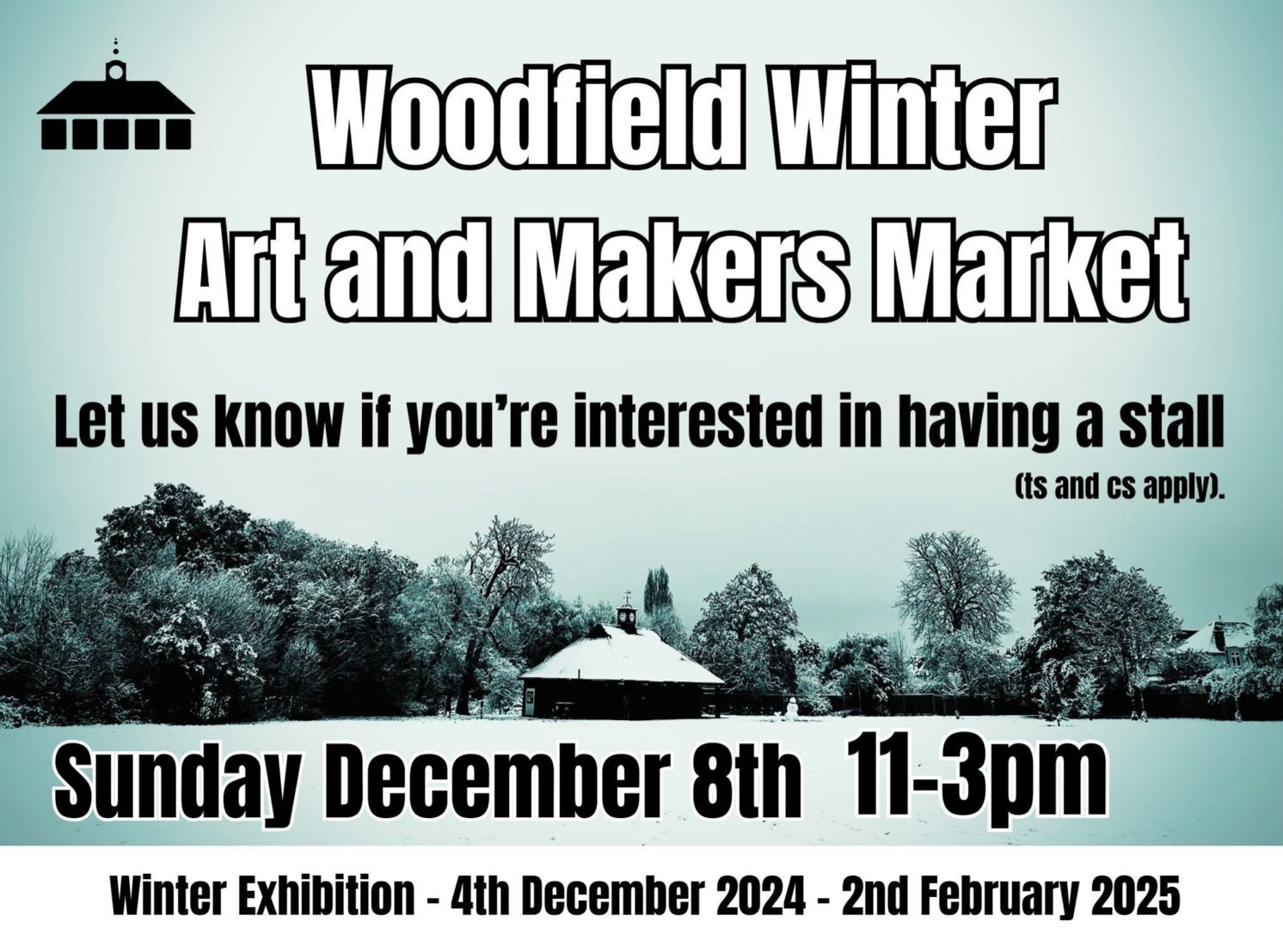 Save the date! The Woodfield Pavilion is holding a Winter Art and Makers Market on Sunday 8th December, 11am-3pm!