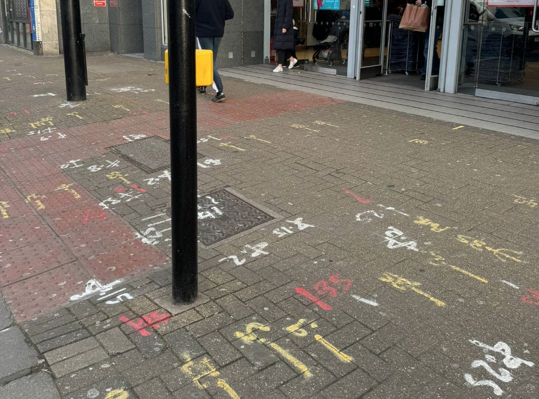 You might have noticed the random coloured pavement markings outside Primark in Tooting Broadway recently and wondered what they were?