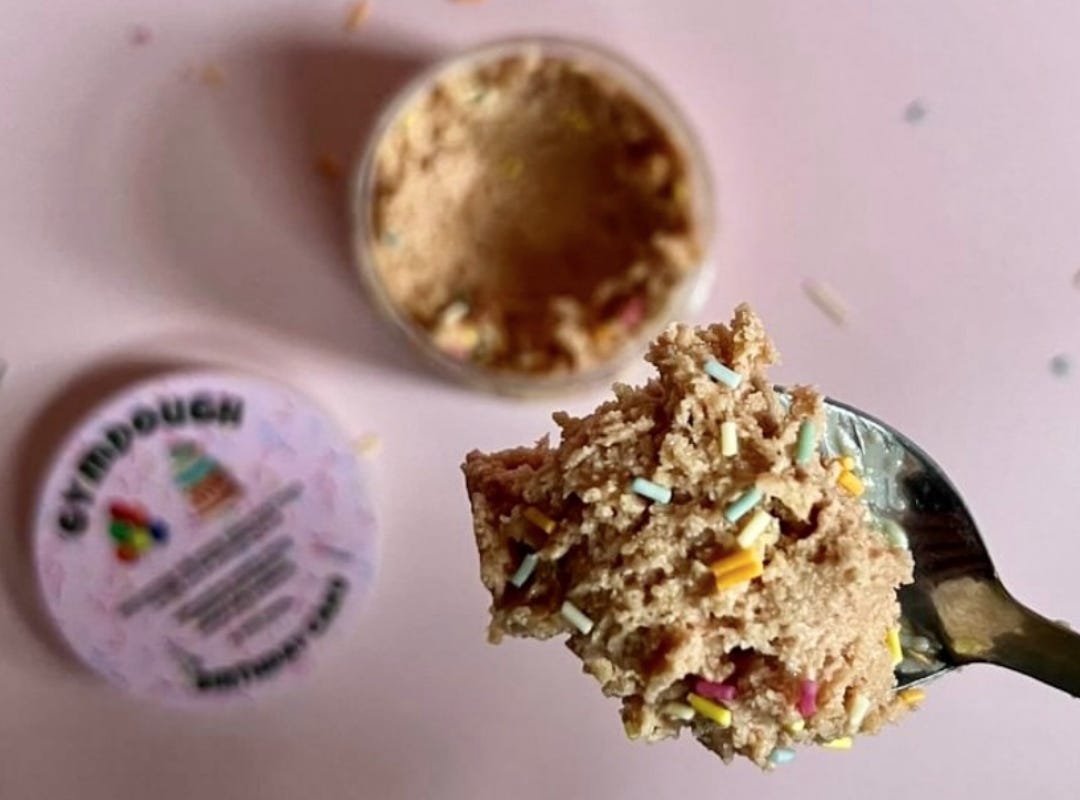 gymDough launched in the summer of 2024 and makes high protein (50 grams or more) edible raw cookie dough with half the calories of normal cookie dough and can be eaten raw, baked, or microwaved. The idea is to provide an alternative to traditional protein bars but made with natural ingredients!