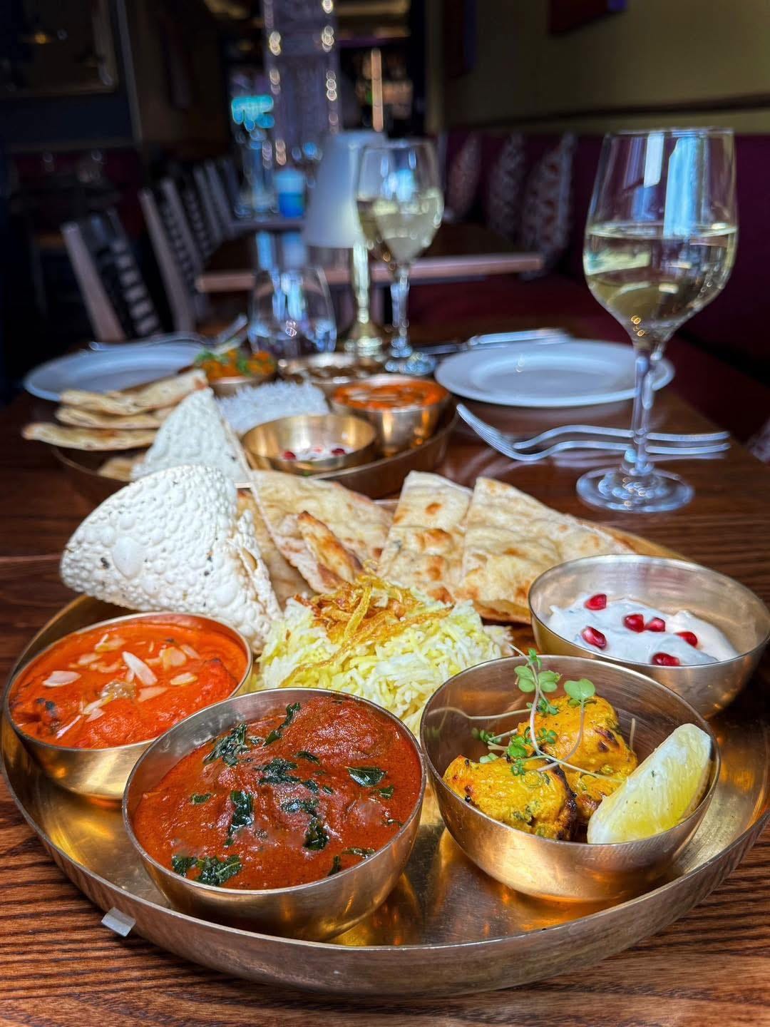 A Thali is made up of a variety of small bowls of their most popular dishes, along with naan bread & pilau rice, served on a platter, and is a great way to enjoy a diverse selection of Indian cuisine – both meat (£14.99) & vegetarian (£12.99) options are on offer!