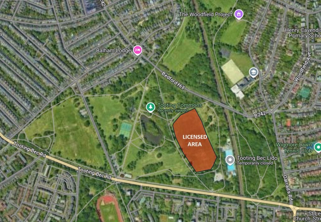 A premises licence to hold a single two-day country music family-friendly event on Tooting Common for up to 6,000 people per day is being applied for by Enable, who manage a portfolio of public services on behalf of Wandsworth Council. Licensable hours would be 12pm–10:30pm on Saturday and 12pm–10pm on Sunday. The license will be valid for one summertime weekend only.